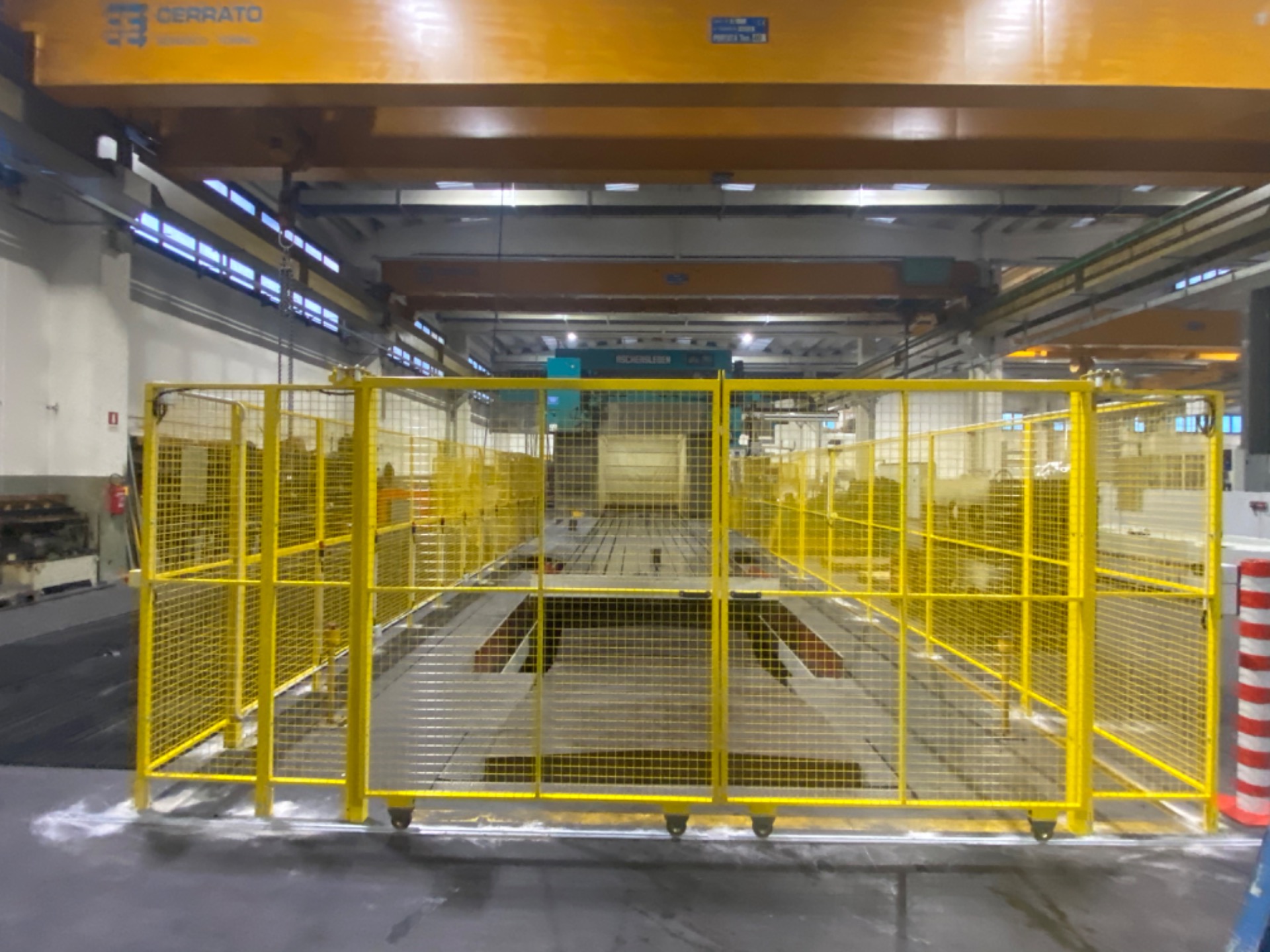 Allestimento di divisioni perimetrali: protezioni modulari in lamiera, rete o policarbonato trasparente, complete di sistemi di blocco integrati, progettate per ambienti produttivi ad alto rischio.